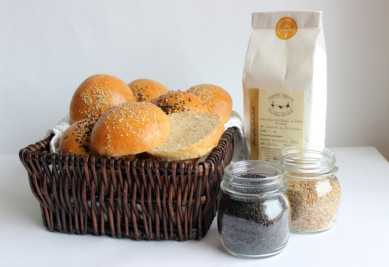 Spennellateli con il tuorlo d’uovo sbattuto o se preferite con del latte, e spolverizzateli con semi di sesamo. Cuocete i burger buns in forno ventilato preriscaldato, a 175° C per 25 minuti.