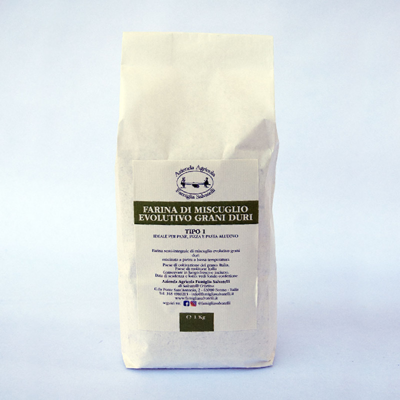 La farina di miscuglio evolutivo è realizzata macinando a pietra a bassa temperatura un miscuglio formato da oltre 700 varietà di grani duri.